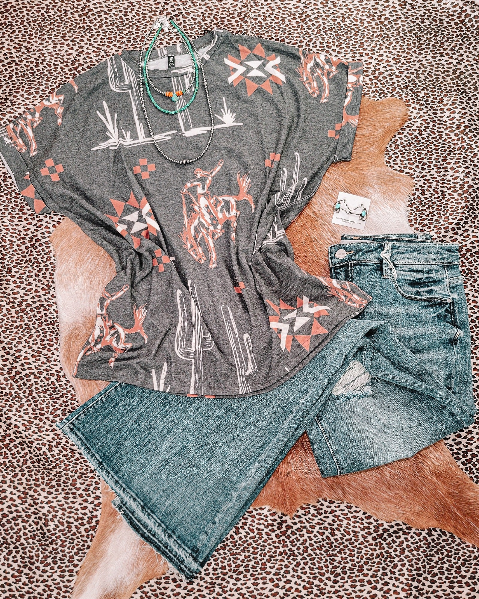 Get ready to ride in style with our "Back In The Saddle" top! With an oversized fit, it's both comfy and stylish. This top is hands down our best one yet, perfect for any occasion. Saddle up and get yours today!