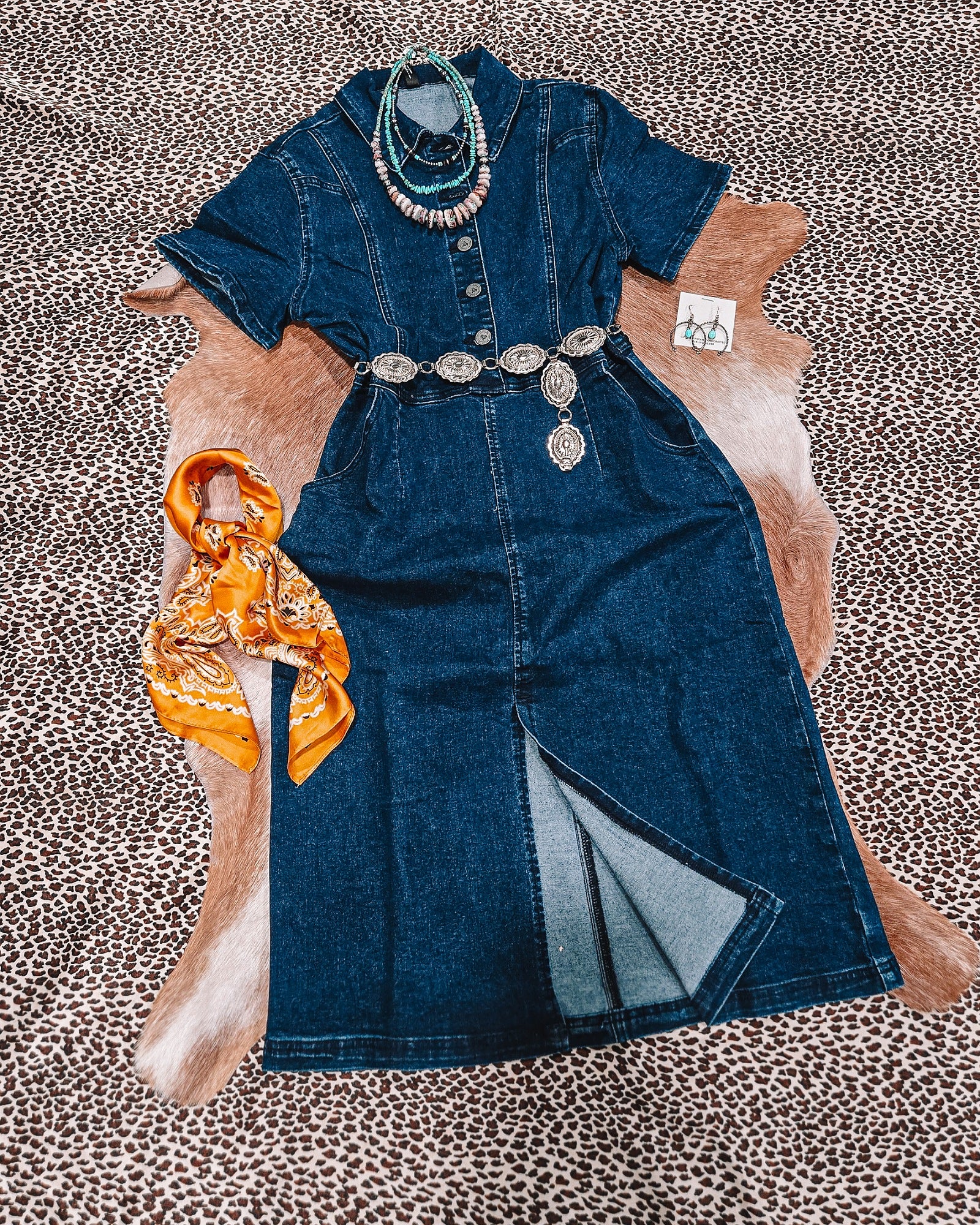 Slip into this flirty Denim Darlin' Dress and show off your playful side! Its mid length and front slit provide a touch of sass, while the stretchy denim offers comfort and style. Bonus: it's got pockets! (Need we say more?!)