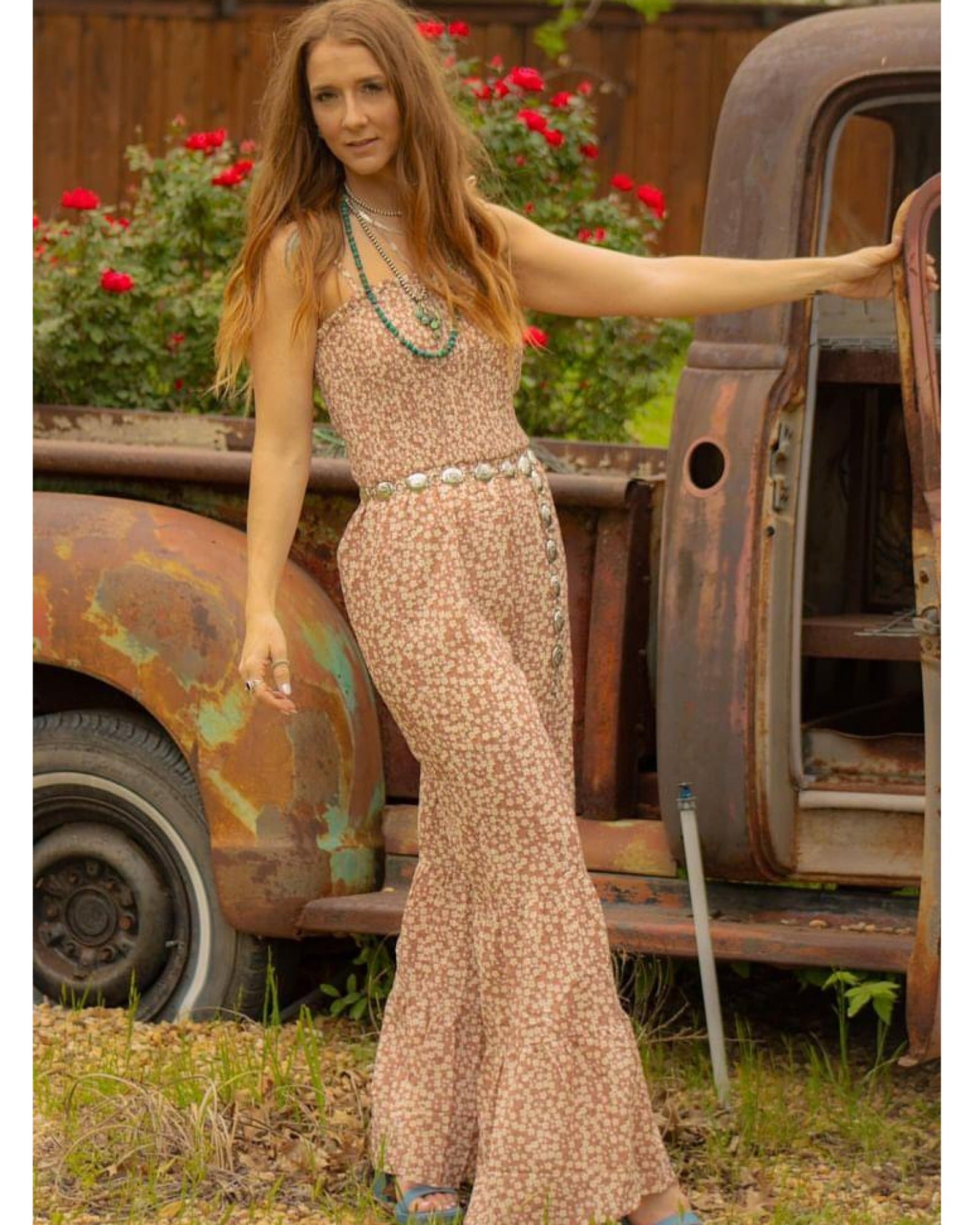 Such a fun jumpsuit for spring and summer! Great room and stretchy smocked top! Straps are fully adjustable