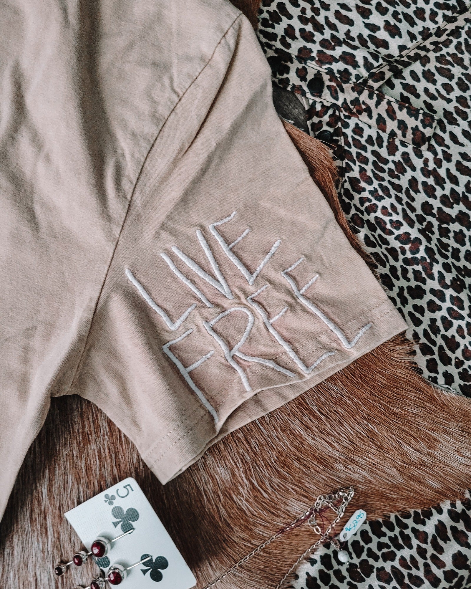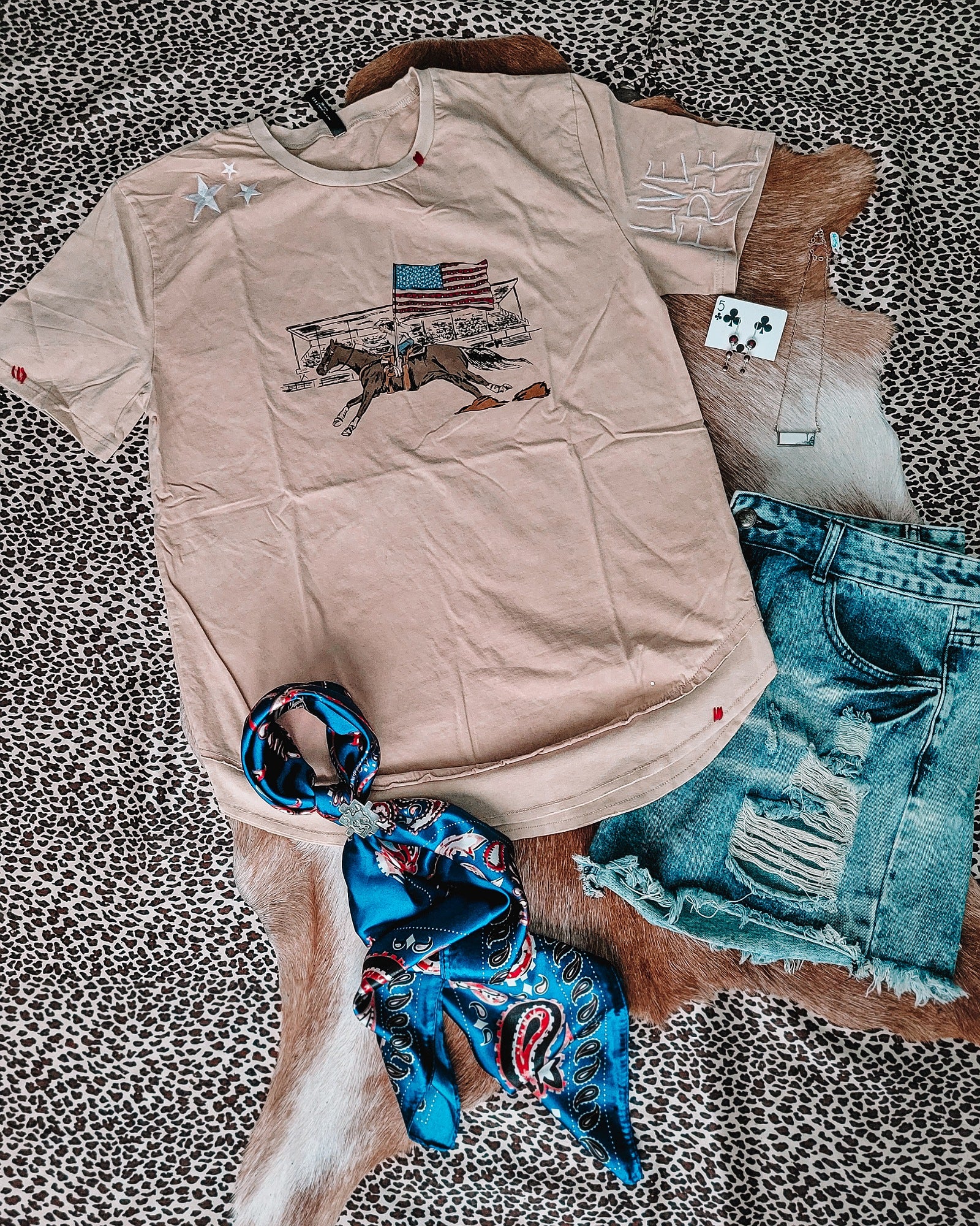 You can't beat an extraordinary graphic tee with embroidery and rhinestones 🙌 Celebrate the American freedom with this cowgirl tee