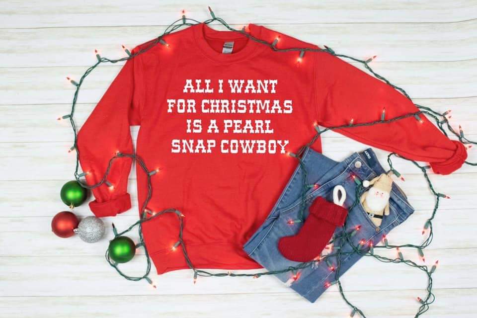 No front teeth this Christmas, all I want is a pearl snap cowboy 😉 unisex sweatshirt with a super unique phrase! For an oversized fit, we recommend sizing up!
