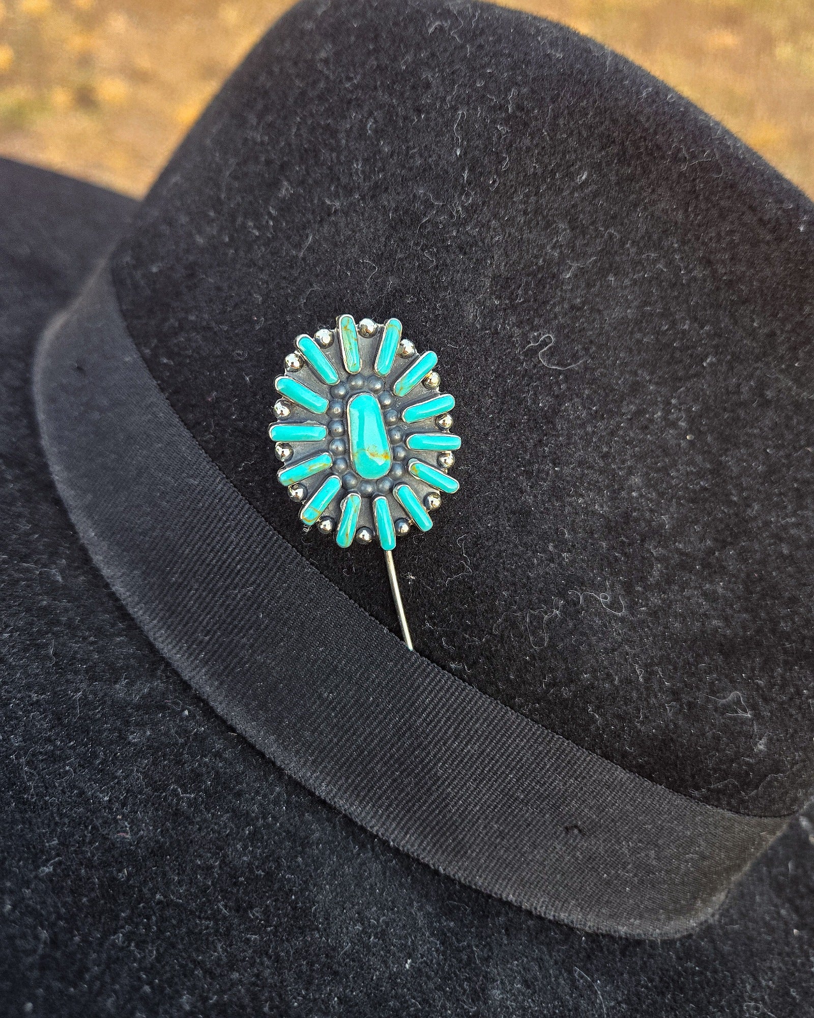 Add a pop of color to your hat with the Pin Me Up Turquoise Hat Pin! Made with genuine Kingman turquoise and stamped sterling silver, this statement piece is perfect for those who don't take themselves too seriously. (And who said hats are just for keeping the sun out of your eyes?)