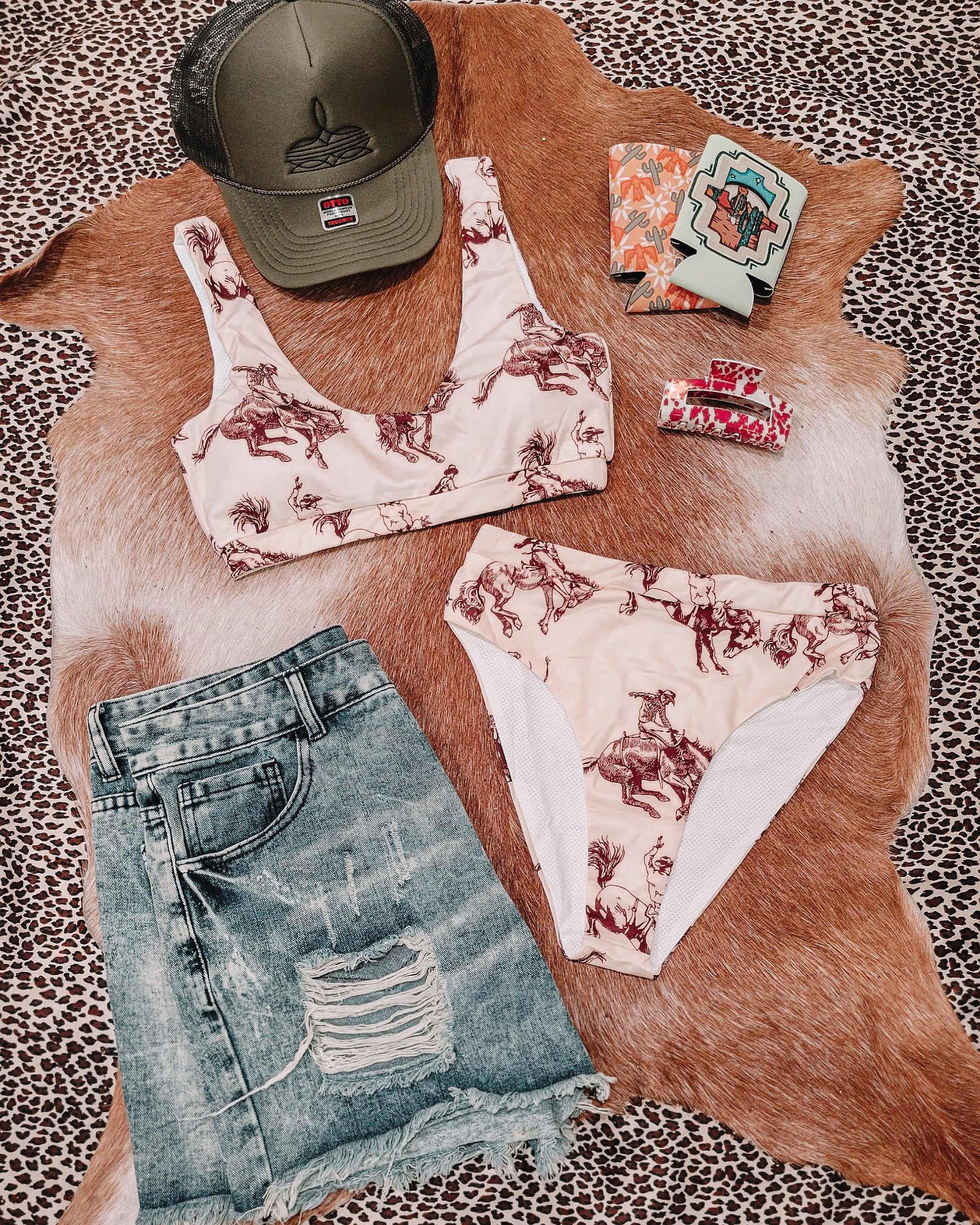 These limited edition bikinis are 🔥👌 A fun neutral pattern yet still packs a punch! These do have a high waisted cheeky fit to the bottoms, with padding in the top!
