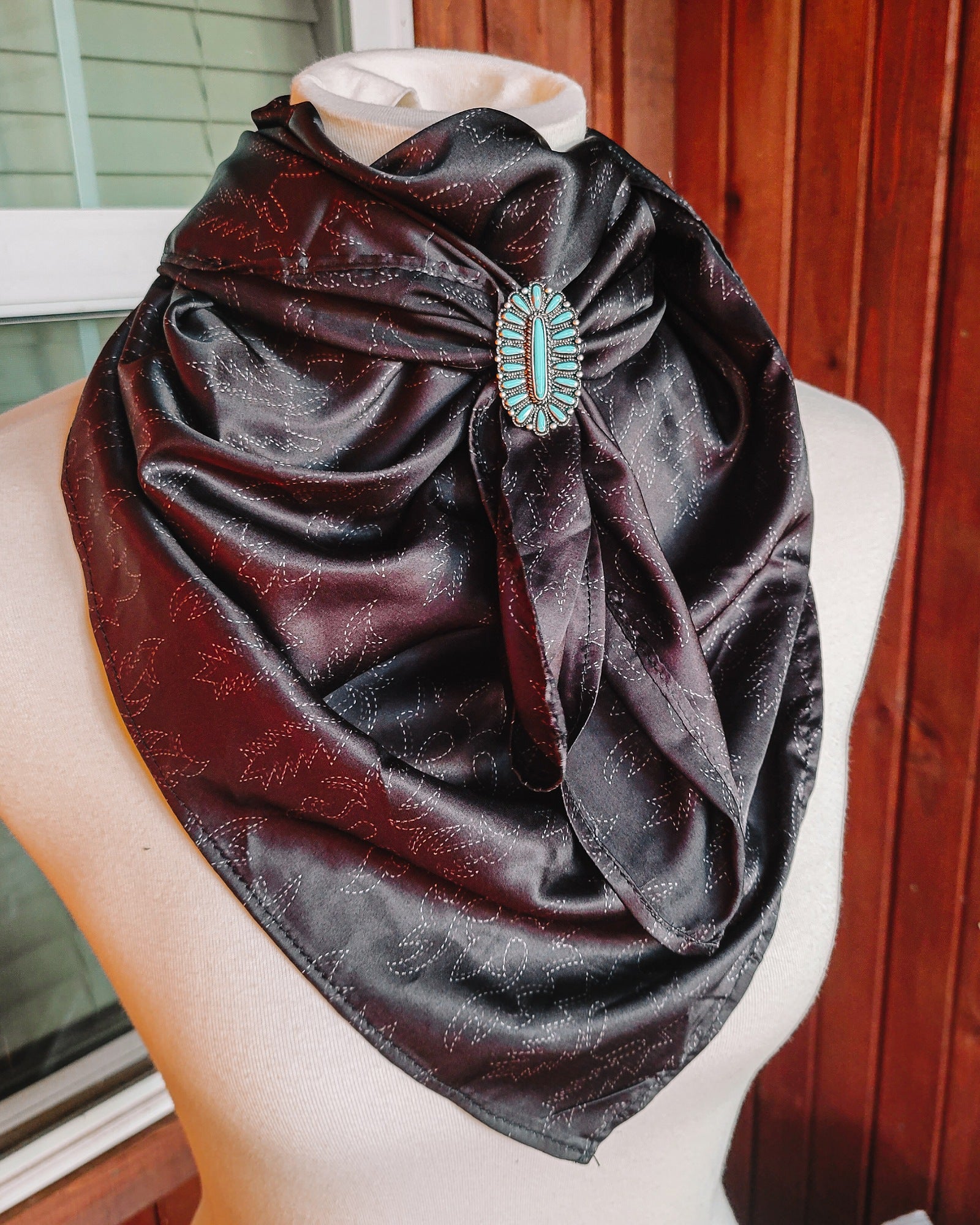 You can't go wrong with a boot stitch print wildrag to wear!