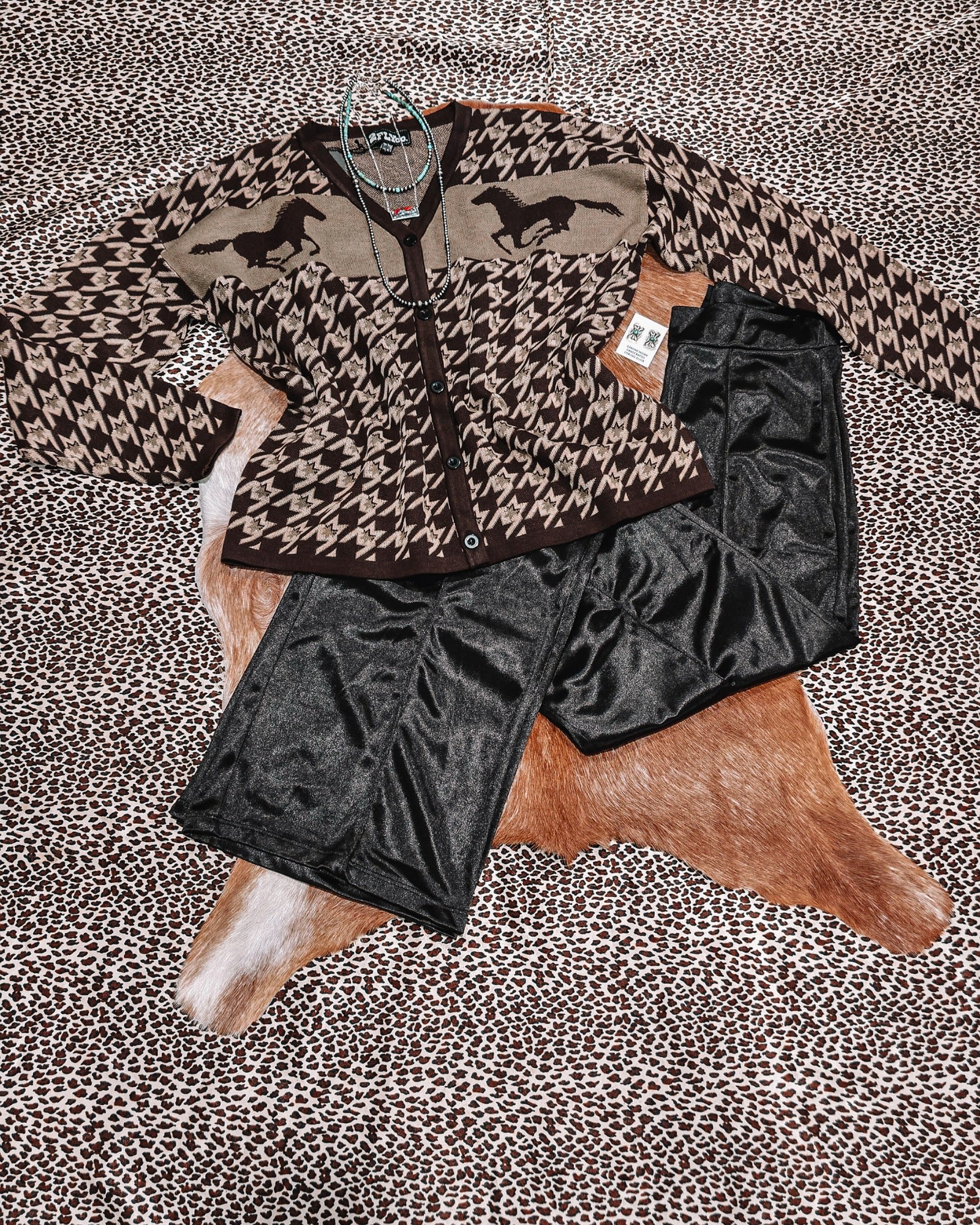 Unleash your inner corporate cowgirl with our Running Free Cardigan! This classic piece features a bold pattern and neutral colors that are sure to make a statement. And with its true-to-size fit, you'll feel comfortable and stylish all day long. Giddy up and add this quirky and playful cardigan to your wardrobe today!