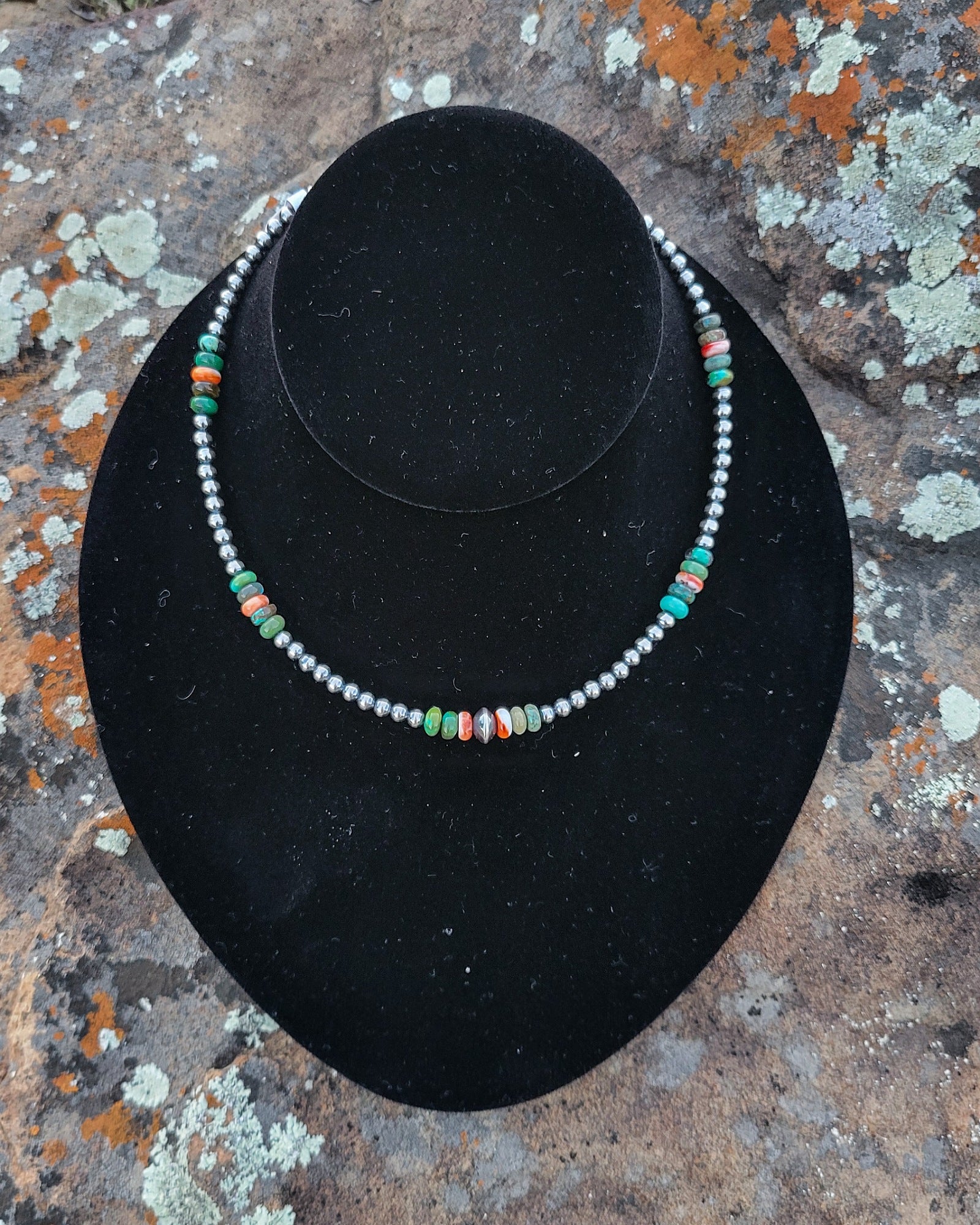 These gorgeous sterling silver pearls mixed with authentic turquoise and orange spiny are just what the doctor ordered for a rough day 😉