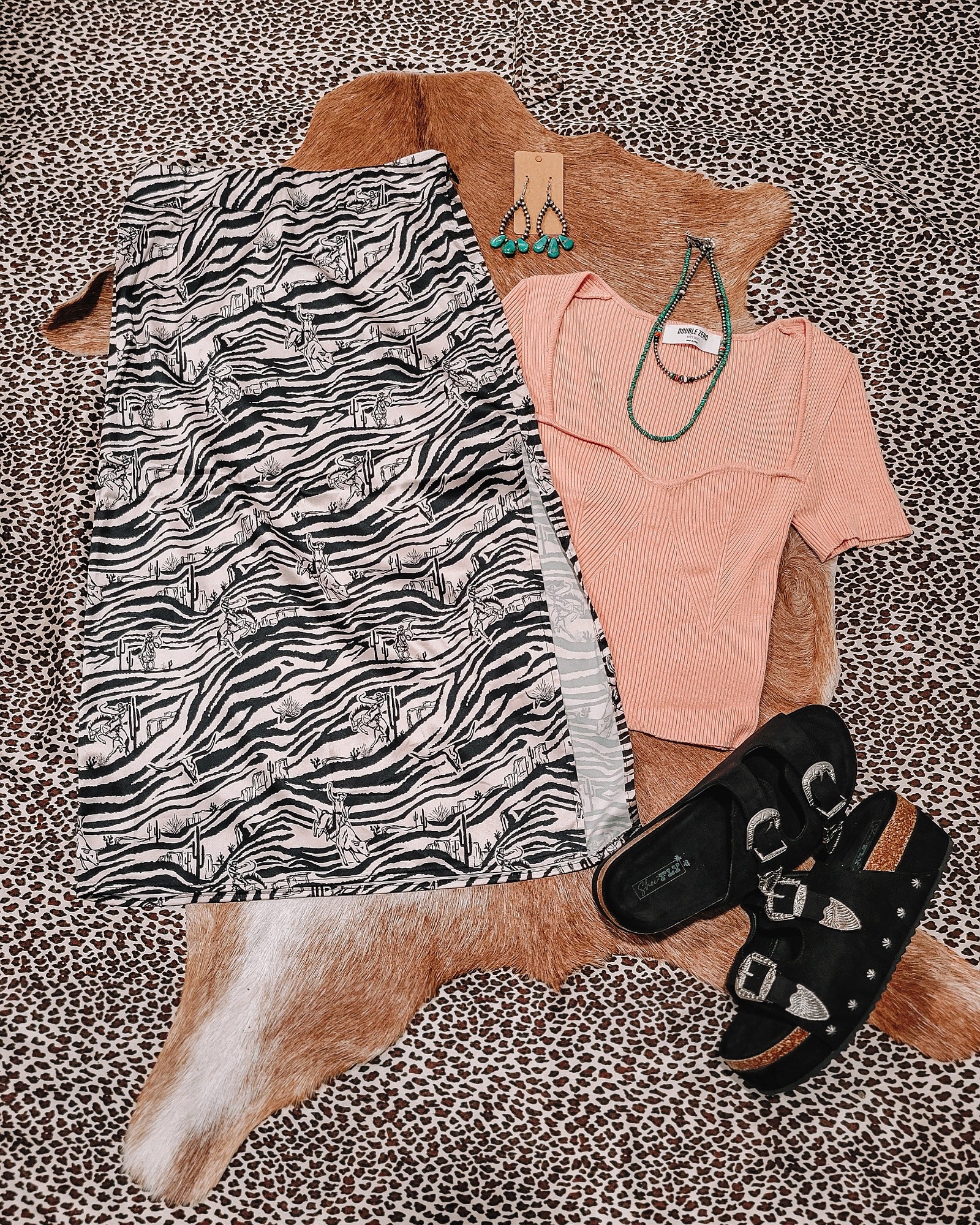 Get ready to take a trip back to the 90's in style with our "Take Me To The 90's Skirt"! This modern zebra print skirt adds a fun and playful twist with a western touch. Featuring a hidden side zipper and great stretch for a comfortable and flattering fit with a luxurious satin feel. Yeehaw!