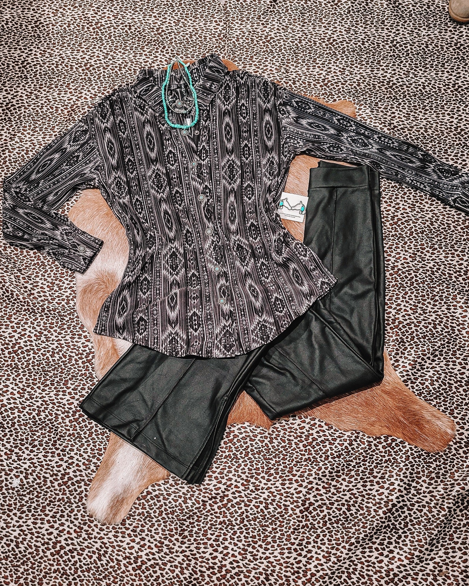 This monochromatic plisse is perfect to add any color to shine! Plus the pearl snaps are conchos, you can beat that! Runs very large, size down