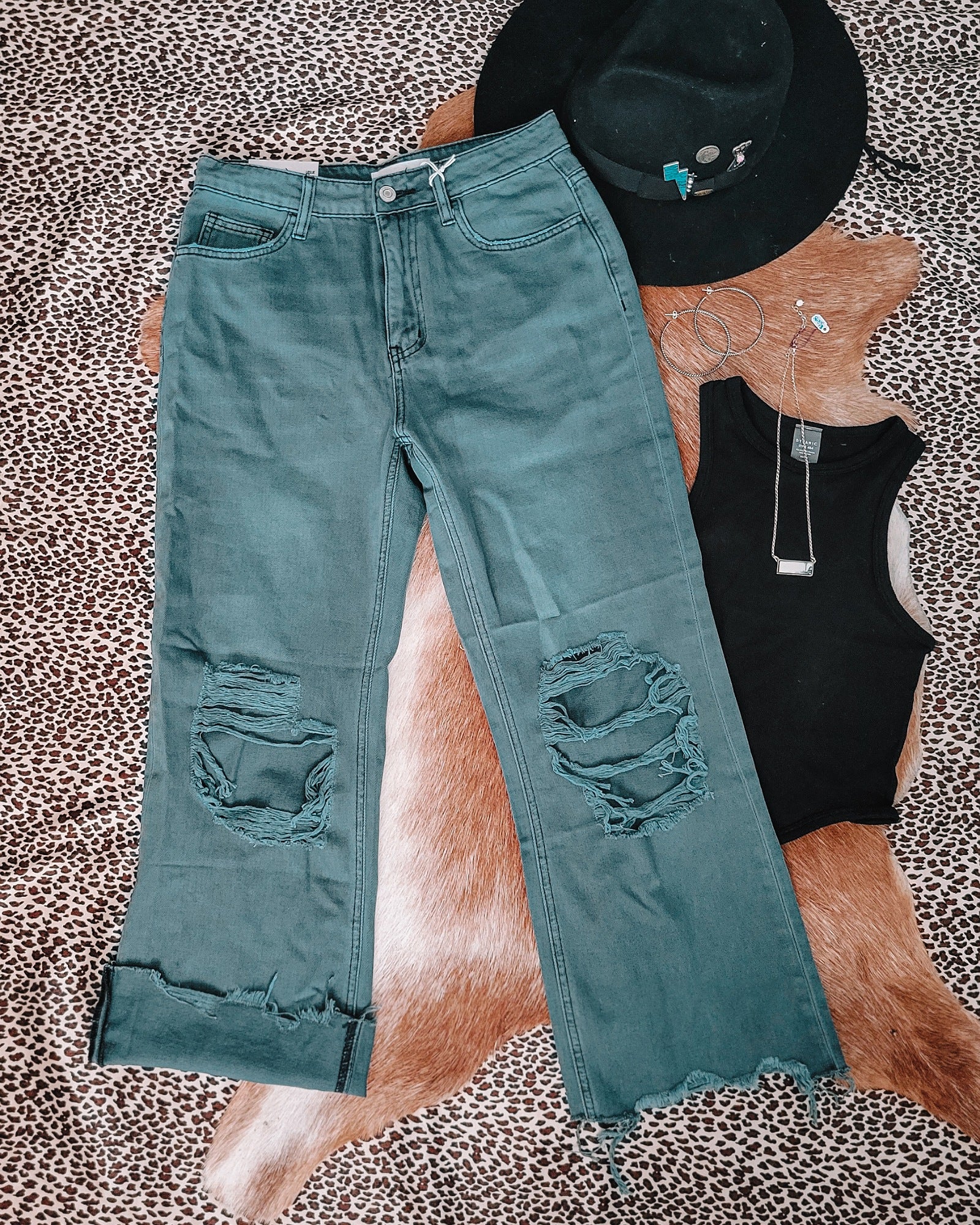 You can't go wrong with a great Cropped pant for a night out! Distressed and fun! You can even cuff them too if ya want! True to size