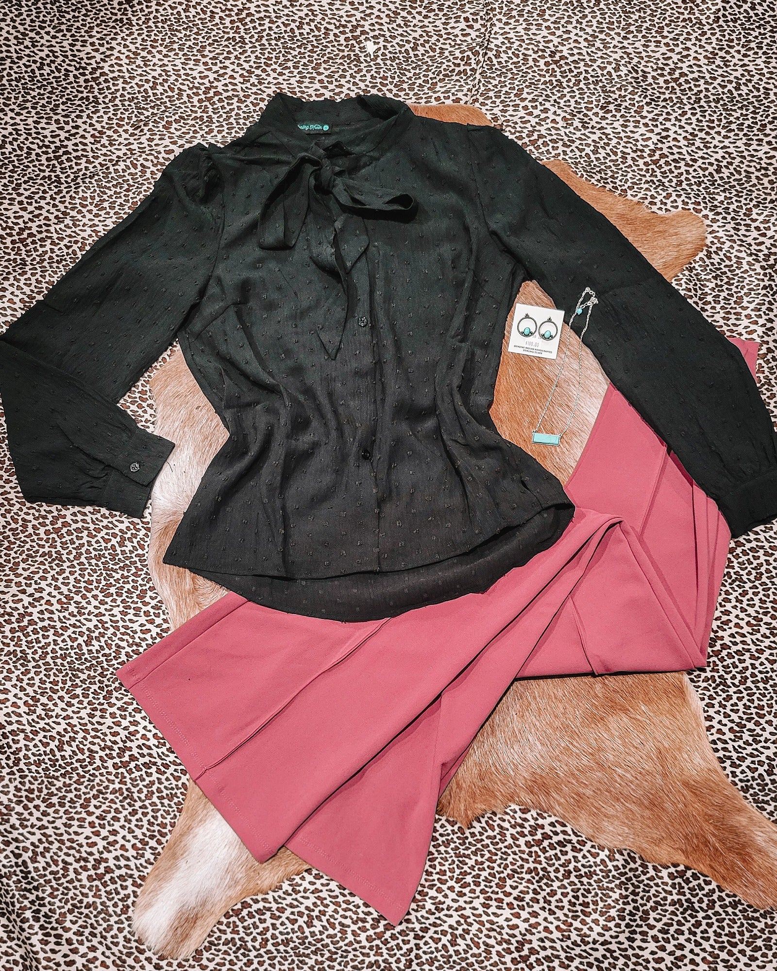 Get ready to take the office by storm with our playful and stylish Bowtie Top! This black top features a full button down design and a unique attached tie that can be styled however you want. And with no stretch and true to size, you'll be looking professional and confident all day long!