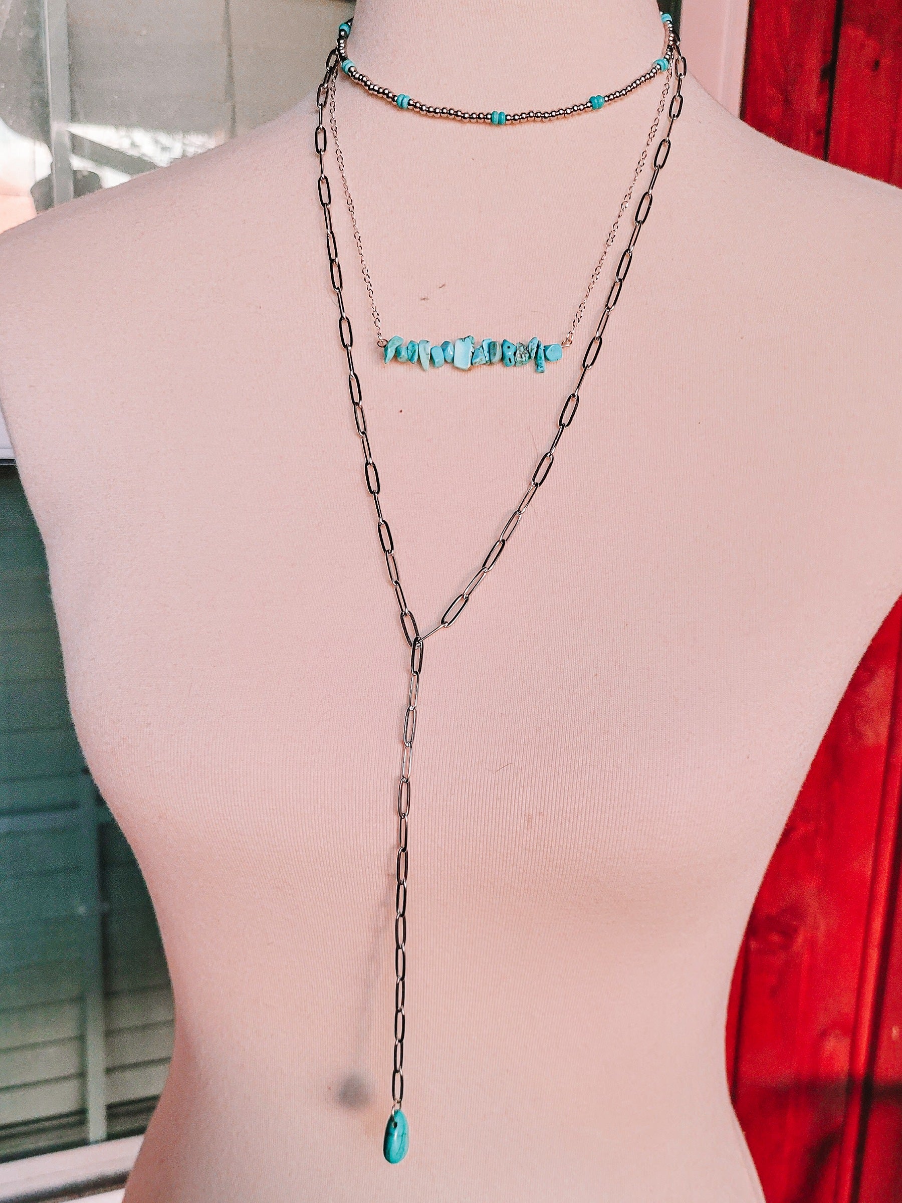 This handmade piece is something I've never done before but I'm in love! Comes with a 3" extender. The necklaces will tangle if not taken care of so please treat it well!
