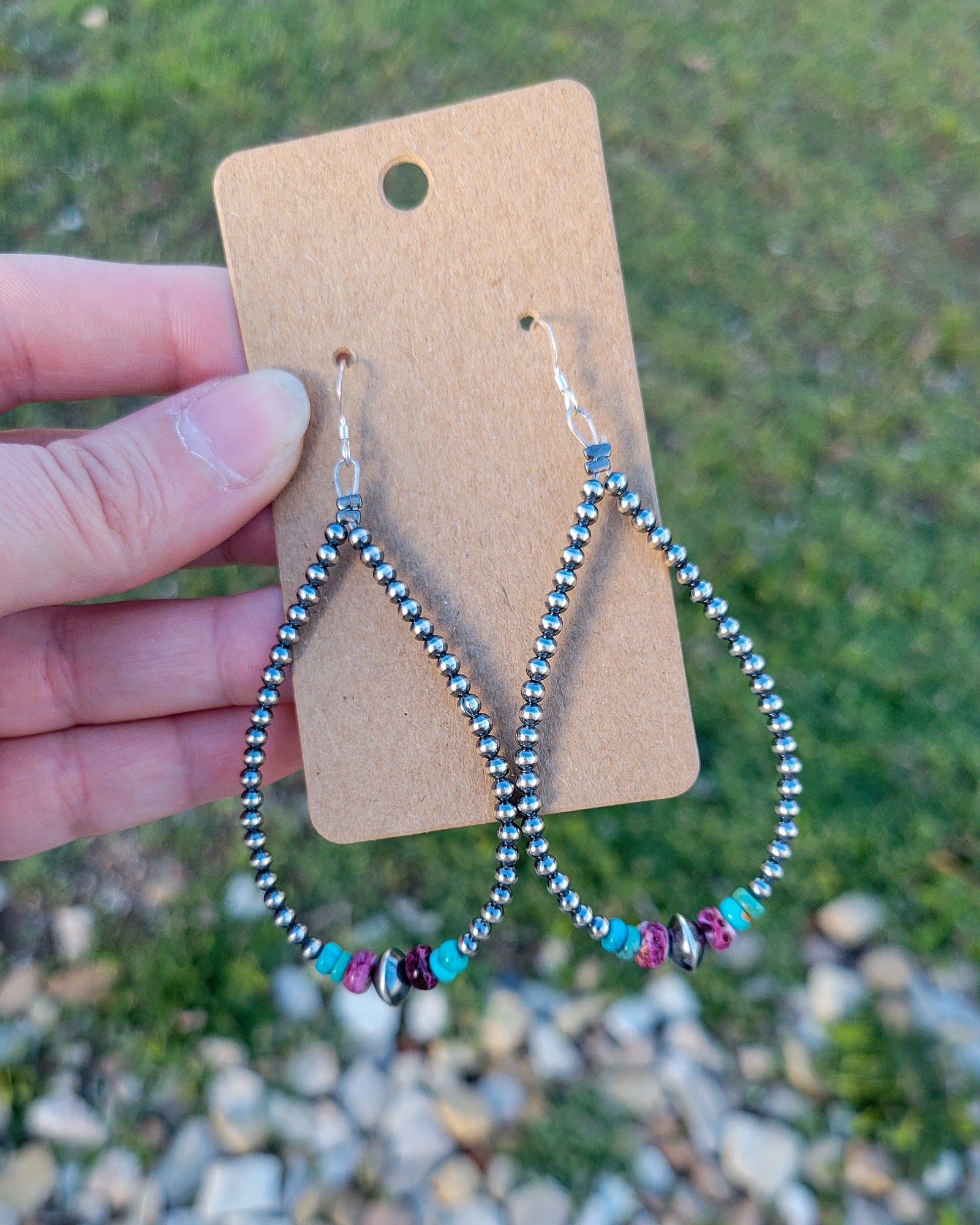 These sterling silver pearls with authentic turquoise and purple spiny are perfect for everyday or a special night out!