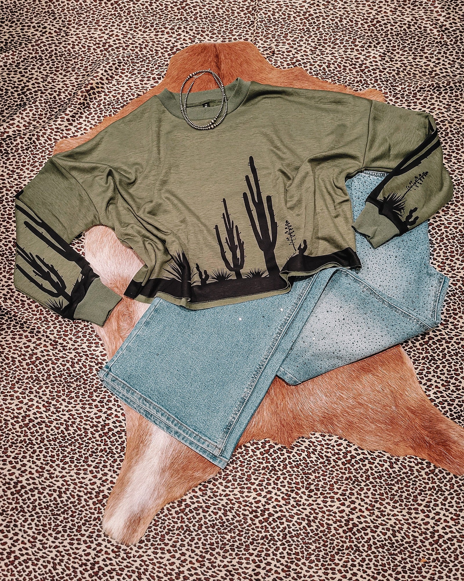 This slightly cropped lighter sweater is great for those cool mornings! But you could still layer to keep you warm too!